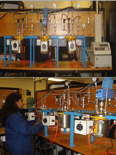 4) High pressure testing rigs for Metal (corrosion/erosion), Rock/fly ash/slag